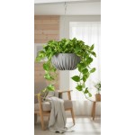 Plastová mísa z kolekce Mira s lankem na zavěšení. Moderní mísa s žebrováním. Součástí květináče je černý plastový vklad sloužící k odtoku přebytečné vody pod tento vklad.