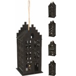 Dřevěný domeček s LED osvětlením teplé bílé barvy. Mix druhů. Napájení 3x AG10 bateriemi (součástí výrobku). Materiál: překližka Rozměry: výška 19 cm šířka 9 cm hloubka…