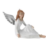 Polyresinový anděl se stříbrnými křídly a glitry.