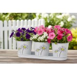 Sada 3 plechových květináčů s motivem kopretiny na tácku