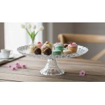 Servírovací tác v čirém provedení s diamantovým designem. Můžete ho využít na dorty, zákusky nebo slané pohoštění pro vaše hosty.