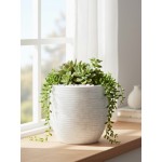 Kvalitní květináč s originálním detailem v podobě proužků.