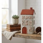 Keramický domeček na svíčku, šedohnědý, 25 cm