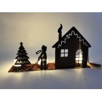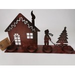 Vánoční hnědá kovová dekorace se svícnem, 17 x 32 cm