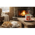Zdobený motivem dvojice rozkošných koťátek mazlících se pod velkým srdcem. Kombinace růžové a červené s bílým porcelánem vytváří harmonickou kompozici.