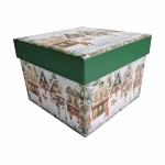 Zdobeno motivem pohádkové vánoční vesnice s domečky, stromečky, postavičkami a vločkami v horní části. Kombinace jemných barev s bílým porcelánem vytváří harmonickou a vánoční kompozici.