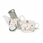 Porcelánová konvička s hrnkem a podšálkem VÁNOČNÍ LOUSKÁČEK v krabičce 300/450ml