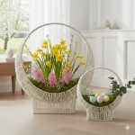 Sada 2ks bílých košů MěsícIdeální pro různé druhy aranžmá.Elegantní a neotřelý design.Materiál: papír v imitaci proutíBarva: bíláVýstelka: igelit