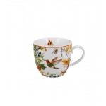 Hrnek zdobí motiv malovaných květin v zářivých barvách a okouzlující kolibřík.
