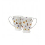 Sada dvou královských hrnků MARGARET ze série Royal Flowers, vyrobených z porcelánu New Bone China, který se vyznačuje přírodní krémově bílou barvou s jemným leskem a výjimečnou pevností a odolností, přičemž si zachovává lehkost a jemnost.