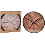 Stylové nástěnné hodiny s černým plastovým rámečkem a skleněným krytem přinášejí do vašeho domova moderní eleganci s dekorativním vzorem rybí kosti v odstínech dřeva.