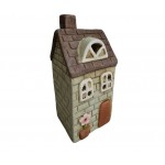 Domeček zaujme svým kamenným vzhledem, romantickými oblými okny a květináčem u vchodových dveří. Díky drobným rozměrům je ideální do jakéhokoliv prostoru – na poličku, noční stolek nebo parapet.