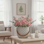 Stylová keramická váza v elegantní šedé barvě s jemným prošívaným vzorem dodá vašemu interiéru nádech originality a sofistikovanosti. Díky praktickému uchu v teplém odstínu okrové barvy se snadno přenáší a zároveň působí jako designový prvek.
