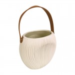 Moderní keramická váza v elegantní krémové barvě zaujme svým minimalistickým designem a jemnou strukturou s vertikálními vlnami. Díky svému tvaru a decentnímu provedení se skvěle hodí do moderních i přírodně laděných interiérů. Praktické hnědé ucho dodává váze originální vzhled a usnadňuje její přenášení.