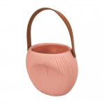 Moderní keramická váza v jemné růžové barvě zaujme svým minimalistickým designem a jemnou strukturou s vertikálními vlnami. Díky svému tvaru a decentnímu provedení se skvěle hodí do moderně laděných interiérů. Praktické hnědé ucho dodává váze originální vzhled a usnadňuje její přenášení.