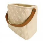 Elegantní keramická váza ve tvaru stylové kabelky okouzlí svým originálním designem a jemnou béžovou barvou. Povrch zdobí reliéfní vzor, který dodává celku luxusní vzhled. Díky praktickému uchu v teplé hnědé barvě se snadno přenáší a stane se výrazným doplňkem každého interiéru.