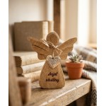 Dřevěný anděl s kovovým srdíčkem a nápisem „Anděl ochránce“ 13 cm