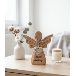 Krásný dřevěný anděl z mango dřeva s jemným kovovým srdíčkem a nápisem „Anděl strážný“ je symbolem ochrany, víry a klidu. Vdechne vašemu domovu harmonii a stane se něžnou připomínkou, že nikdy nejsme sami.