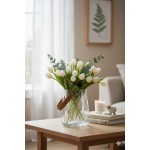 Tato elegantní čirá skleněná kabelka je stylovým doplňkem, který okamžitě upoutá pozornost. Skleněné tělo s jemně zvlněným povrchem působí moderně a lehce, zatímco pevné kožené ucho se zlatými detaily dodává dekoraci luxusní a originální vzhled. Díky svému tvaru je ideální jako malá váza, mini květináč, nádoba na dekorace nebo samostatný designový prvek na poličku či stůl.