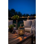 Stylová menší betonová lucerna s vyřezávaným ornamentem, která vnese do vašeho domova či zahrady jemné světlo a vintage atmosféru. Jemné vzory ornamentu vytvářejí kouzelné světelné efekty při zapálení svíčky. Starozelená patina dodává lucerně rustikální a elegantní vzhled.