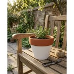 Květináč v sobě spojuje přírodní vzhled matné terakoty s jemností bílé glazury, díky čemuž se stane stylovým doplňkem každého interiéru. Minimalistický design snadno zapadne do moderního i rustikálního prostředí.