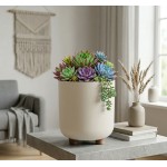 Květináč SOFIA v teplé béžové barvě spojuje eleganci a praktičnost. Díky malým nožičkám stojí stabilně. Vyroben z odolného plastu, lehký a snadno se udržuje.
