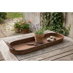 Podnos je ideální pro servírování, aranžování dekorací, svíček nebo květinových kompozic. Rezavý povrch dodává autentický vintage charakter, který se skvěle hodí do industriálních, rustikálních i moderních prostor.