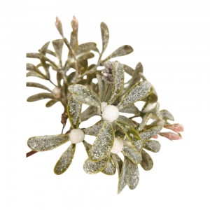 Zelená větvička s bílými bobulemi a sněhovým popraškem 18 cm