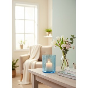 Skleněný svícen Hurricane světle modrý, 15x17,5 cm
