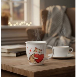 Porcelánový hrnek KOČKA SE SRDÍČKEM 650 ml v krabičce