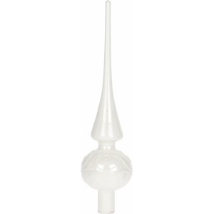 Skleněná špice na stromek 25x6 cm, bílá lesklá