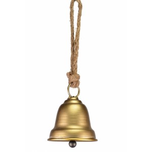 Kovový zvonek staro-zlatý na jutovém provaze 8x7,3x25 cm