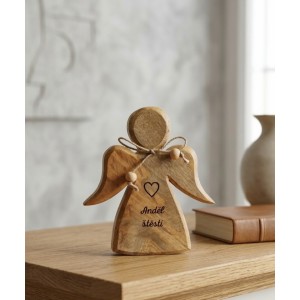 Dřevěný mango anděl s nápisem „Anděl štěstí“ 21…