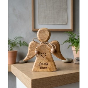 Dřevěný mango anděl s nápisem „Jsi můj anděl“…