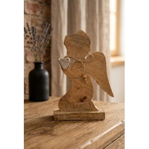 Dřevěný anděl s kovovým srdcem, 27,5 cm
