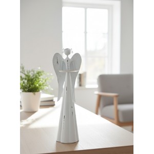 Plechový anděl s kalíškem na svíčku, bílý 30 cm,…