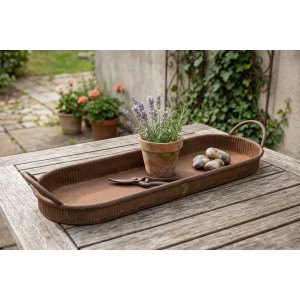 Kovový oválný podnos s ušima Belly L – rezavý 68,5 cm
