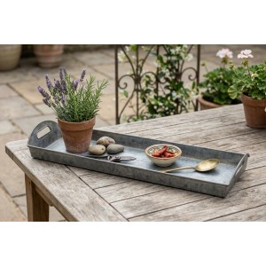 Kovový obdélníkový podnos s ušima Buse L – zinkový 63 cm