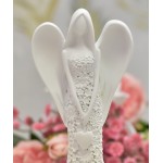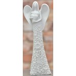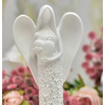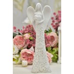 Soška anděla v šatech z drobných bílých kvítků drží v ruce srdíčko jako symbol lásky. Andílek může být pěkným dárkem i milou pozorností pro vaše přátelé.