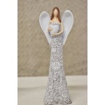 Soška anděla v šatech z drobných bílých kvítků drží v ruce srdíčko jako symbol lásky. Andílek může být pěkným dárkem i milou pozorností pro vaše přátelé.
