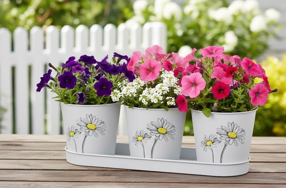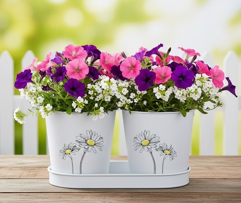 Tyto kovové květináče na první pohled zaujmou svým něžným motivem drobných kvítků. Jemná kresba působí lehce, čistě a elegantně – perfektně doplní jak moderní interiér, tak i rustikální či provence styl. Bílý podklad v kombinaci s decentní ilustrací květin vytváří harmonický celek, který nechá vyniknout samotným rostlinám. Ať už do nich zasadíte barevné petúnie, bylinky nebo převislé letničky, vždy budou působit upraveně a stylově.