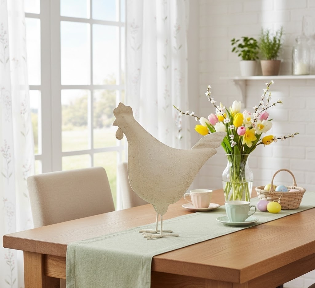 Dekorace můžete snadno obměňovat podle toho, zda se blíží Velikonoce, nebo chcete spíše neutrální jarní styl bez svátečních motivů.