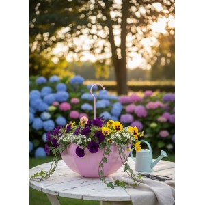 Skleněný svícen Zora, lila s listem 25x15 cm