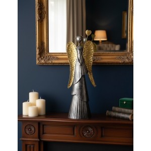 Skleněný svícen s kovovým srdíčkem 12x9,8 cm