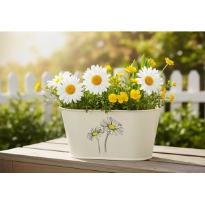 Plechový oválný květináč šedý s kopretinou 11x23x13…