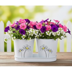 Plechový květináč šedý s kopretinou, sada 2 ks…