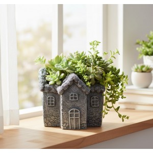 Betonový květináč ve tvaru domku, 13,5 × 13 × 12 cm